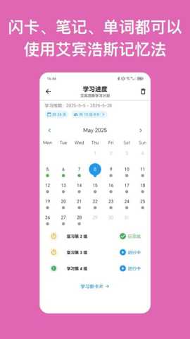 二、践行科学记忆法,对抗遗忘规律: 学了就忘是语言学习最大的敌人。软件深度整合了艾宾浩斯遗忘曲线原理,能够根据用户添加知识点的日期,自动计算出最科学的复习时间点,并生成每日个性化的复习计划。用户无需自己规划何时该复习什么,系统会智能推送当天需要巩固的内容。这解决了许多用户想复习却不知从何开始、何时复习的困惑,将复杂的记忆规划交给算法,确保每一次复习都在最佳时机进行,从而用最少的时间实现最牢固的记忆效果。