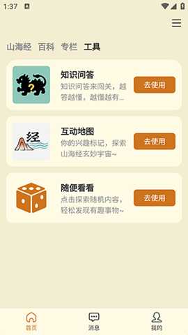 1. 结构化百科检索与浏览:针对山海经内容庞杂、条目繁多的特点,软件提供了强大的结构化检索系统。首页设计清晰,将内容按神兽异禽、奇国异人、名山大川、灵草嘉木、神器异宝等逻辑分类呈现,用户一目了然。无论是想查找青丘之狐的记载,还是探寻昆仑虚的方位,都可以通过分类浏览或精准搜索快速定位。每个词条都配有详细的原文引用、白话译文、背景考据以及相关的神话故事延伸,解决了用户自行翻阅古籍时面临的查找困难与理解障碍。