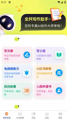 全民写作App的核心定位是成为用户口袋里的全能创作伙伴。它深度整合了前沿的人工智能技术,内置了功能强大的AI机器人,能够理解并响应用户多样化的写作指令。用户只需通过简洁明了的界面,输入自己的创作需求、关键词或大致构想,系统便能在短时间内生成结构完整、语言流畅的初稿或创意片段。特别应用针对当下热门的社交媒体营销场景,提供了专业级的种草文案创作功能,帮助电商从业者、内容博主等轻松产出吸引眼球、促进转化的推广内容。无论是构思一部小说的宏大框架,还是打磨一段精炼的产品介绍,全民写作都能提供切实有效的支持,将创意火花迅速转化为可见的文字成果。