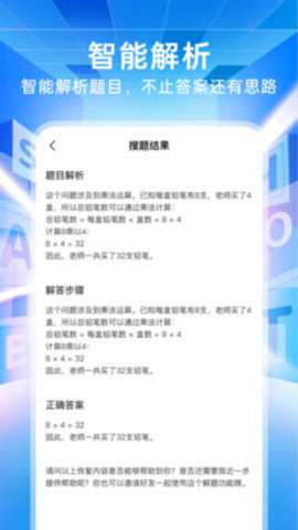 1. 全学科智能搜题与解题:针对用户遇到难题无处下手的痛点,软件提供了强大的搜题功能。其题库全面覆盖小学至高中全年级的数学、语文、英语、物理、化学等主要学科,甚至能够处理复杂的数学公式推导和几何图形证明题。用户遇到难题时,只需使用软件的整页拍摄功能,即可快速获取详细的解题步骤与思路点拨,而不仅仅是最终答案。这有效解决了学生因某道题卡壳而影响整体学习进度的问题,确保了学习流程的顺畅。