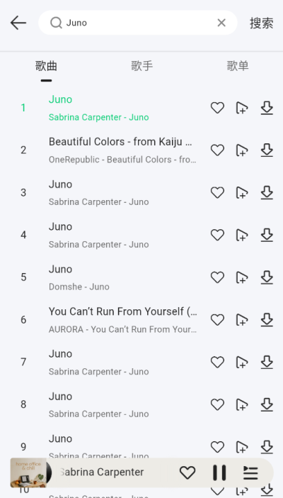 3. 智能音乐发现与高效检索系统:解决了用户不知道听什么和找不到想听的歌两大常见问题。软件首页提供智能推荐和精细化分类的歌单,辅以实时更新的各类榜单及完整的歌手索引,帮助用户轻松发现新音乐。搜索功能尤为强大,支持在歌曲、歌手、歌单三类结果间流畅滑动切换,让信息查找一步到位,精准满足用户的搜索意图。
