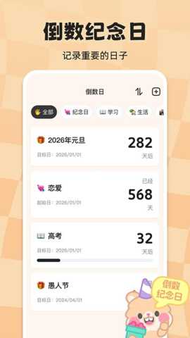 在快节奏的现代生活中,时间管理变得尤为重要,一款能够清晰记录重要日期并直观展示时间流逝的工具,无疑能成为我们规划生活、提升效率的得力助手。计时倒数日历App正是一款集实用性与个性化于一体的软件,它不仅仅是一个简单的日历,更是一个能够陪伴用户记录生活点滴、规划未来日程的智能伙伴。通过其强大的功能和贴心的设计,它帮助用户将抽象的时间概念转化为可视化的进度条,让每一天都过得更加充实和有意义。
