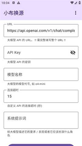 其面向未来的开放架构是另一大前瞻性亮点。完美兼容OpenAI协议意味着它不仅现在可以连接ChatGPT,未来也能轻松适配任何遵循同一标准的新兴AI模型。这使得小布换源APP成为一个可持续进化、永不落伍的平台,随着AI技术的日新月异,用户手中的小布助手也能随时同步至最前沿的智能水平。