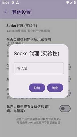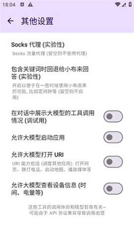 3. 实验性网络代理与安全增强: 考虑到部分用户在网络访问上有特定需求,APP贴心地提供了实验性的Socks5代理功能。用户可以根据自身网络环境,选择启用流量代理,这不仅能应对一些特殊的网络访问场景,也在一定程度上为数据传输增添了另一层安全保障。这项功能解决了高级用户在特定网络环境下稳定、安全使用AI服务的需求。