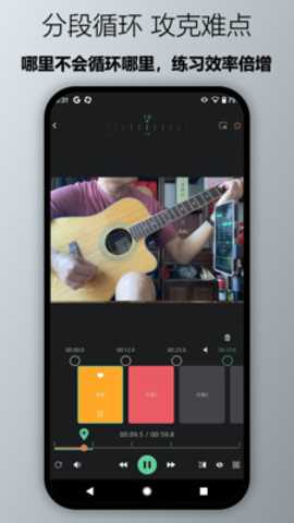 4. 专注难点突破的练习模式: 软件设计始终围绕针对性提升这一核心。通过结合音视频分析、AB点精确定位(标记练习起点与终点)和循环模式,它引导用户将有限的练习时间集中在最难掌握的卡点上。舞蹈中一个总也做不标准的转身、吉他曲中的一个快速换和弦段落。用户可以抛开已掌握的部分,专门为这个难点创建循环练习单元,进行高强度、高重复性的专注训练。这直接解决了练习中木桶效应的短板问题,确保每一次练习都能带来实质性的技巧进步,最大化时间投资回报率。