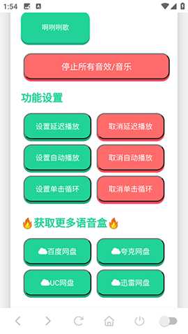 3. 循环与全局管理,提升使用便捷性:为了满足用户重复聆听或需要持续播放特定音效的需求(作为手机铃声或提示音的制作),应用提供了单击循环播放功能,一键开启后,该音效将循环播放直至手动停止。考虑到用户可能在播放音效时切换至其他应用,软件提供了停止所有音效/音乐的全局控制按钮。这个设计解决了后台音频管理不便的痛点,用户可以随时一键清空所有正在播放的音频,避免尴尬或干扰,确保了使用的灵活与可控。