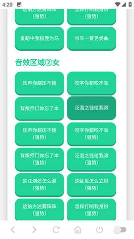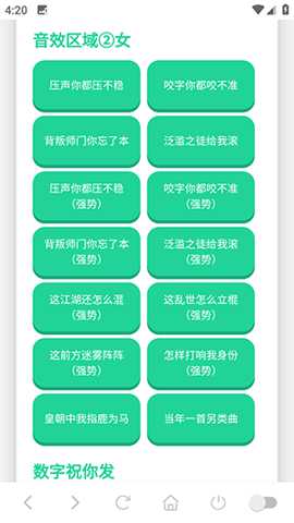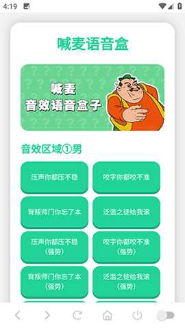 1. 海量音效即点即用,操作极致简化: 应用从根本上解决了用户寻找和播放趣味音效流程繁琐的痛点。用户无需复杂搜索或等待下载,进入应用后,海量音效以直观的列表或分类形式呈现,只需随机点击或选择心仪的音效,便能立即听到对应的语音。这种所见即所得的零门槛操作设计,让任何年龄段的用户都能轻松上手,快速将想法转化为趣味语音,极大地降低了创意表达的技术门槛。
