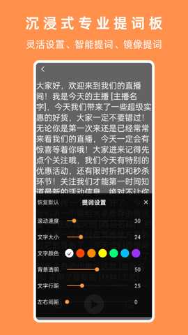 4. 高度自定义的提词设置:为满足不同用户的个性化表达习惯和拍摄需求,应用提供了丰富的自定义选项。用户不仅可以手动精细设置台词的初始滚动速度、字体大小、颜色和背景透明度,以适配不同的阅读习惯和拍摄环境光线,还能在拍摄过程中随时暂停、跳转或修改台词。这种将控制权交还给用户的设计,确保了无论是习惯快语速的激昂演讲,还是需要慢速细读的深情叙述,都能找到最舒适的提词体验。