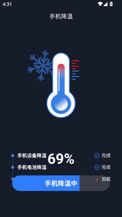 3. **实时硬件监控与智能降温**:针对手机发热影响使用体验和硬件寿命的问题,每日清理王内置硬件监控模块,可以实时显示CPU温度、电池状态及电量消耗情况。当检测到设备温度过高时,用户可主动触发降温功能,软件将通过智能调节后台活动、关闭高耗电服务等方式,帮助设备快速、安全地降低温度,保护电池健康。