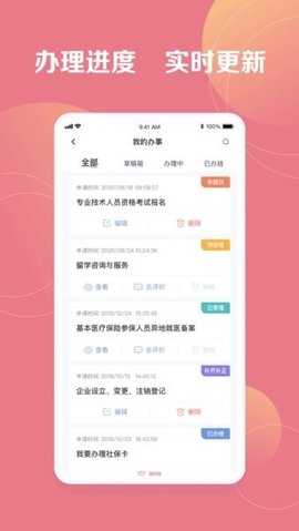 2. 全流程企业办事支持,解决开业难问题: 为优化营商环境,助力企业发展,软件专门开辟了企业服务板块。创业者可以通过该平台在线完成工商注册、名称核准、税务登记、社保开户、各类行政许可申报等一系列涉企事项。这种集成化服务模式,打破了部门间的信息壁垒,实现了企业开办一网通办,大幅压缩了企业从筹备到正式运营的时间与成本,有效解决了企业,特别是中小微企业开业难、手续多的困境。