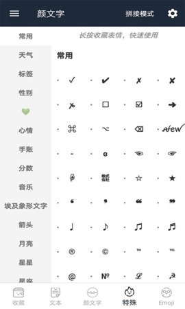 前瞻性的内容运营与个性化服务: 应用团队对网络文化趋势保持高度敏感,更新频率高,能及时纳入当下热门的符号组合。应用还提供了符号组合记录功能,可保存用户常用的复杂排列模式,实现一键快速调用,这相当于为用户提供了个性化的表达模板,大大提升了高频用户的效率。
