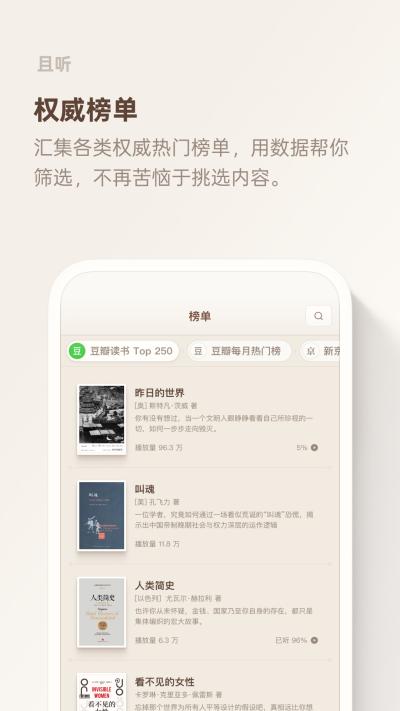 3. AI智能选书与个性化推荐:面对海量信息,用户常常陷入选择困难和信息茧房。且听App的AI系统充当了用户的首席知识官,每日从全球范围筛选最具价值和深度的内容,主动过滤掉冗余和低质信息,确保推送的都是硬核干货。系统会根据用户的收听历史与偏好,智能构建并不断更新用户的个性化知识图谱,主动推荐能够弥补其认知短板或进行跨学科关联的内容,帮助用户打破认知边界,实现系统性的知识增长。