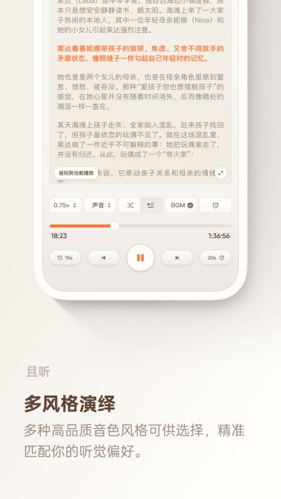 1. AI深度精讲与内容重构:这是且听App的基石功能,彻底解决了用户面对厚重、晦涩的经典著作或专业报告时读不进去、看不懂的难题。AI并非机械朗读,而是像一位高明的学者,对原著进行解构-分析-重构,自动梳理出书籍的底层逻辑框架,将复杂的理论转化为通俗易懂、逻辑连贯的观点序列。结合罗永浩团队的内容审美,最终呈现的讲稿不仅信息准确,更充满了严密的逻辑感和令人印象深刻的金句,极大地降低了用户的认知门槛,让学习硬核知识变得轻松有趣。
