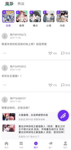 4. 社区互动与资源共享:认识到漫画阅读不仅是个人享受,也是社交分享的过程,零界绘内置了活跃的圈子社区功能。用户可以与其他爱好者互动交流,分享自己的宝藏漫画,发表阅读感想,或从他人的推荐中发现新的佳作。社区分享墙成为了一个充满活力的内容策源地,让优质但小众的独立作品也能被更多人看见和喜爱,极大地丰富了用户的阅读视野和社交体验。