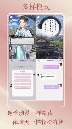 2. 双模式沉浸阅读与进度管理:为了解决不同用户的阅读习惯差异,软件创新性地提供了情景模式和气泡小说模式两种阅读方式。情景模式侧重场景与角色的视觉化互动,如同观赏一部互动剧;气泡模式则更贴近传统对话式阅读,清晰明了。配合便捷的书签与进度保存功能,用户可以随时中断或继续阅读,无需担心遗忘情节,保障了阅读体验的连贯性与自由度。