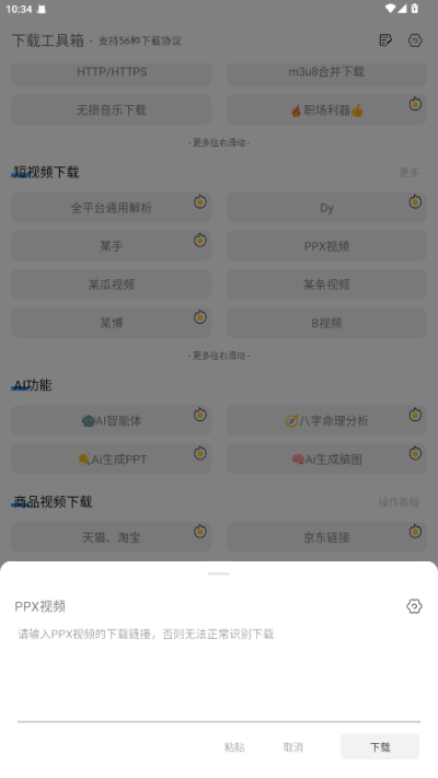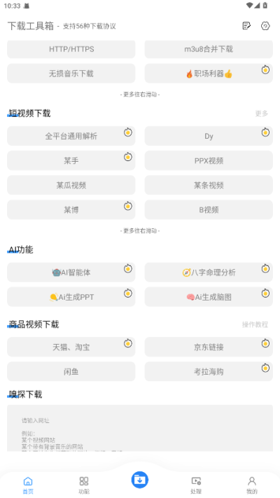 1. 全平台多媒体资源解析与下载:精准切入用户无法直接保存网络媒体内容的痛点,内置强大的解析引擎,能够一键识别并提取抖音、快手、YouTube、Instagram、Twitter等主流平台视频与音频的真实下载地址。用户无需记忆复杂规则或使用多个工具,仅需复制链接,粘贴即可下载,解决了用户收藏、离线观看或二次创作素材获取的核心需求。
