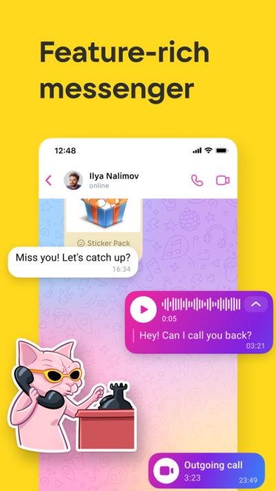 1. 全场景即时通讯与连接: 针对用户与国内外朋友、同事保持紧密联系的核心需求,VK提供了强大的即时通讯系统。支持一对一或群组间的文字、高清语音及视频通话,群组视频通话最多可支持32人在线,完美满足远程会议、线上聚会或家庭联络的需求。用户不仅可以添加好友进行私密聊天,还能通过附近的人或全球搜索功能发现新朋友,拓展国际社交圈。