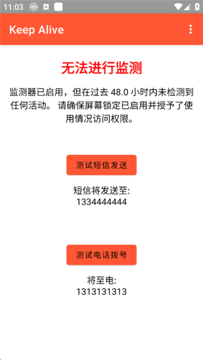 1. 智能闲置监测与预警触发: 这是软件的基础与核心功能。用户只需在应用中开启检测器,并设定一个活动确认时间间隔(30分钟或1小时)。应用后台会安静运行,持续监测手机是否被使用(如点亮屏幕、触摸操作)。一旦超过预设时长手机仍无任何活动迹象,系统便会判定为异常闲置,自动触发预警流程。这一功能完美解决了用户因突发疾病(如晕厥、风)、严重跌倒或其他意外导致无法主动求助的困境。