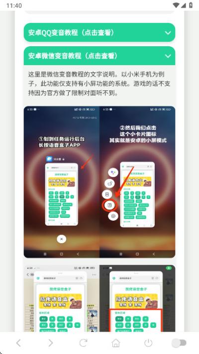 4. 内置变声教程与玩法引导: 除了预设音效,部分用户还有进行实时语音变声的进阶需求。小夹子语音盒贴心地内置了详细的变音教程模块。用户通过继续往下翻即可找到并点击查看。教程提供了从原理到实操的步骤指引,帮助用户利用手机系统或第三方工具实现实时变声,与音效库功能形成互补,拓展了软件的可玩性和创造性,解决了用户想玩变声但不知从何下手的困惑。