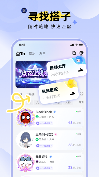 在快节奏的现代生活中,无论是追求竞技巅峰的刺激,还是渴望情感共鸣的慰藉,人们对于即时、精准且富有温度的社交陪伴需求日益增长。点TaApp正是一款应运而生的综合性社交平台巧妙地将游戏陪玩、语音互动、兴趣社交与智能匹配融为一体,为每一位用户找到那个能精准接住所有情绪的Ta,不仅仅是一个工具,更是一个充满活力与可能性的数字社交空间,让孤独有处安放,让快乐有人分享。
