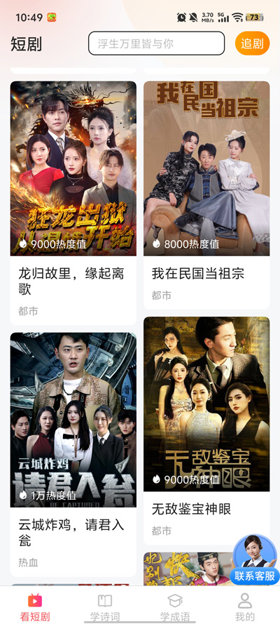 1. 海量资源聚合与精准搜索:解决找不到、看不全的难题。 应用深度整合了来自全网各大平台的短剧资源,覆盖都市言情、古装玄幻、重生逆袭、战神奶爸、豪门恩怨等所有热门题材,堪称一部短剧百科全书。用户无需在多个App间切换寻找,一站式即可满足所有观影需求。强大的搜索功能支持关键词模糊匹配,无论是知道剧名还是仅记得部分情节,都能快速定位目标剧集,彻底告别剧荒。