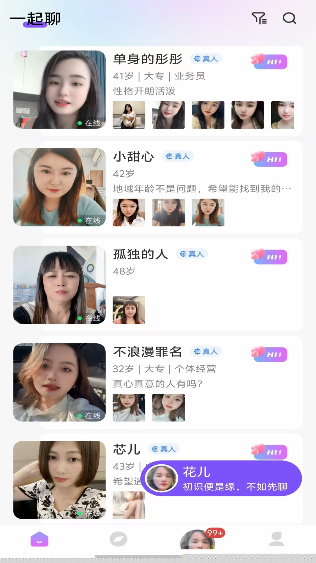 1. 构建可信社交基石,解决身份真实性问题: 软件内置了严谨的双重身份认证体系。用户不仅需要完成实名信息验证,还必须通过实时的视频核验。这一功能从根本上解决了用户在网络社交中最担忧的对方是否真实的痛点,有效筛除了虚假账号和照骗,营造了一个让用户敢于卸下心防、真诚交流的环境。这为后续的所有互动和线下见面奠定了坚实的信任基础。