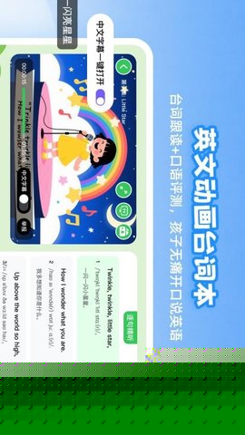 灵活自主的学习工具: 听力训练模块支持变速播放和句子复读功能,孩子可以根据自身情况对难点句子进行精听和强化练习,掌握学习主动权。双语字幕可自由切换,既能保障剧情理解流畅,又能强化词汇记忆效果。