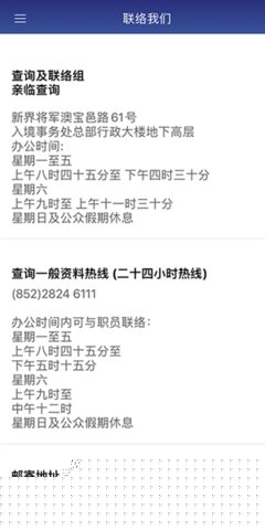 集成化的电子签证管理与紧急支援:软件是管理电子签证的官方平台。成功获批的签证(如电子签证)会直接储存在用户的App账户中,方便随时查看和出示,在出入境时供工作人员查验,简化了通关核验步骤。App集成了紧急联络通道,提供一键直拨入境事务处186824小时求助热线的功能(需网络支持)。当用户在境外遇到证件丢失、签证问题或其他与入境相关的紧急情况时,可以迅速通过此渠道获得官方的专业指引与协助,为用户的安全出行增添了一份保障。