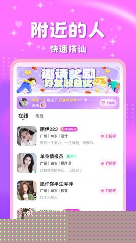 2. 动态同城筛选,拉近现实距离:基于地理位置的服务,清晰展示附近活跃的用户。这一功能满足了用户对于可发展关系的现实考量,方便其根据实际距离和详细的个人资料进行有选择性的接触。无论是希望拓展本地社交圈,还是倾向于同城恋爱,都能在此功能下轻松实现,让线上互动拥有落地生根的可能性。