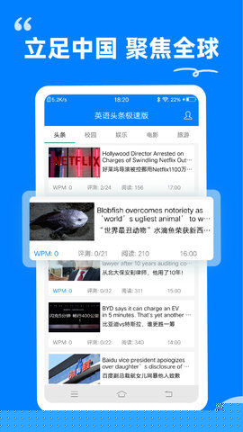 英语头条极速版是一款专为英语学习者设计的智能阅读应用,其核心使命是打破语言学习与真实世界信息获取之间的壁垒,通过先进的算法,每日精选并推送涵盖科技、财经、文化、娱乐等多领域的全球权威新闻资讯。与普通新闻应用不同围绕每一篇新闻构建了完整的学习闭环,集成了智能分级、精准发音、即时翻译、跟读对比、词汇管理及学习追踪等一系列功能,为用户创造一个沉浸式的英语应用环境,让阅读新闻的过程,成为听力训练、词汇积累、语法感知和口语模仿的综合学习体验,帮助学习者在真实的语境中稳步提升英语的综合应用能力。