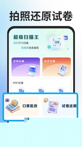 3. 专项证件与试卷处理工具: 精准满足了用户对特定类型文件处理的特殊需求。针对身份证、护照、银行卡等重要证件,提供专用扫描模式,确保生成符合标准的、边缘整齐、信息清晰的电子副本,方便用于各类线上申请或安全存档。独有的试卷还原功能更是学生和教师的福音能智能擦除试卷上手写的答案痕迹,快速得到一份干净的原始试卷,便于重复打印使用或建立习题库,解决了教学资源反复制备的麻烦。