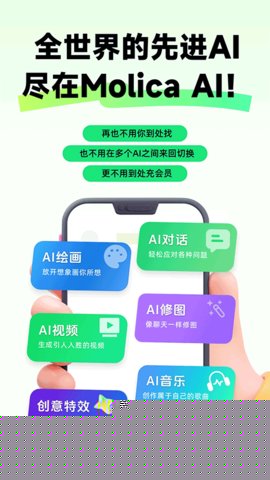 在当今这个信息爆炸、创意为王的时代,无论是内容创作者、职场人士还是普通用户,都渴望拥有一款能够集多种智能能力于一身的高效工具,以应对从日常娱乐到专业工作的多元化需求。Molica AI正是一款应运而生的综合性人工智能软件巧妙地将ChatGPT4、Midjourney、Suno3等业界顶尖AI模型的核心能力整合到一个统一的平台之中,实现了文本、图像、音频、视频等多模态创作的无缝衔接。用户无需在多个应用间来回切换,即可在一个流畅的流程内完成从灵感激荡到成果落地的完整闭环,其内置的二十余项功能模块覆盖了生活、学习、工作与创作的方方面面,为现代数字生活提供了一个强大、便捷且充满想象力的智能解决方案。