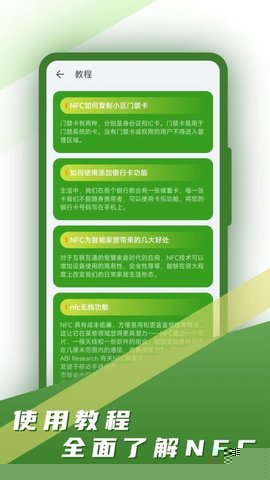 使用提示: 为确保软件所有功能正常使用,首次运行时请务必根据手机系统的提示,授予软件访问NFC硬件的权限。在进行卡片读写操作时,请将卡片紧贴手机背部通常标识的NFC感应区域,并保持稳定直至操作完成提示出现。