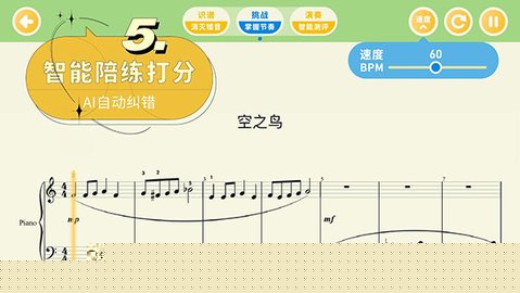 2. 解决练习枯燥,缺乏反馈的问题:高精度实时音准识别与纠正。这是软件的核心技术功能。在练习模式下,用户的每一次弹奏都会被内置的智能音频分析引擎实时捕捉。系统会精确比对用户弹奏的音符与标准音符在音高、时值上的差异,并通过颜色提示(如绿色代表正确,红色代表偏差)直观地显示在滚动的谱面上。对于古筝甚至能识别滑音、颤音等装饰音的韵味,提供专业级的反馈,让用户像拥有一个随时在侧的AI老师,及时纠正错误,提升练习效率。