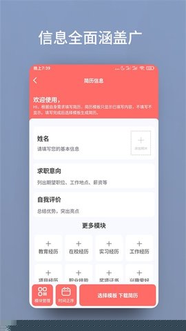 软件的功能设计紧密围绕用户从零开始创建到最终投递简历的全流程需求,具体可分为以下四大核心功能模块: