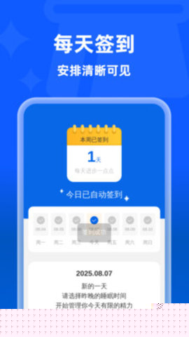 快速使用指南: 1. 首次启动后,请跟随引导完成身高、体重等基本信息的设置,建立您的专属健康档案。2. 每日记录时,只需在主日历点击当天日期,选择文字、图片或语音任一方式,即可轻松完成日志。3. 如需习惯提醒,进入提醒板块,点击添加,选择类型并设置好时间与重复周期即可。4. 当感觉设备变慢时,切换到清理模块,点击开始扫描,审阅扫描结果后确认清理,即可快速释放空间。