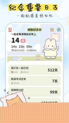 纪念日倒数是一款专注于时间管理与情感记录的手机应用,的核心使命是帮助用户将生活中所有值得铭记的瞬间——从浪漫的爱情纪念、亲人的生日,到个人的职业突破、旅行计划,乃至任何具有特殊意义的私人时刻——都转化为清晰可见的倒计时或正计时。通过直观的数字跳动,软件将时间的流逝具象化,让用户能够时刻感知重要日子的临近或回味已走过的珍贵时光,超越了传统日历的简单记录功能,通过高度自定义、智能提醒和优雅的视觉呈现,打造出一个专属于用户的重要时刻博物馆,让记录本身成为一种充满期待和温暖的情感体验。