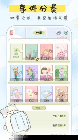 1. 情感化设计与人机交互流畅度:软件在视觉与交互上体现了极高的完成度。内置的庞大图标库和主题背景并非简单的装饰,而是经过设计,能与不同类型的事件(如浪漫、家庭、成就)产生情感共鸣,帮助用户更生动地定义一个日子。整个App的操作逻辑极其聚焦和顺畅,从添加、编辑到浏览纪念日,流程直观简洁,使得记录行为本身轻松无负担,提升了用户的持续使用意愿。