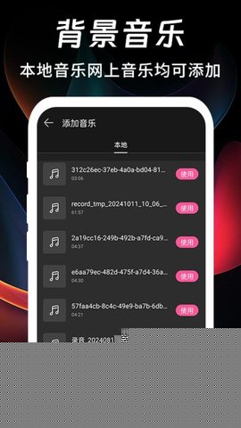 2. 高效动态影像创作流程: 在视频剪辑方面,软件深度解决了用户从素材整理到成片输出的效率痛点。其直观的时间轴编辑模式支持视频、音频、字幕、贴图的多轨道非线性编辑,通过简单的拖拽即可完成剪辑、排序和合成。结合本地直连功能,用户可以直接从手机音乐库选取背景音乐,省去跨应用寻找素材的麻烦。而一键适配各大社交平台视频尺寸的功能,更是免去了用户手动调整画幅比例以适应不同平台发布的繁琐步骤,极大提升了内容分发的效率。