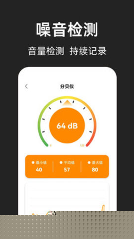 2. **应对环境噪音评估需求**:在现代都市,噪音污染日益受到关注,无论是评估办公环境、检查居家隔音,还是关心学习环境的安静程度,用户都需要一个便捷的测量工具,内置的高精度分贝仪,能够持续监测环境声级,并以清晰的数字和曲线图呈现,帮助用户量化噪音水平,做出相应的环境调整决策。