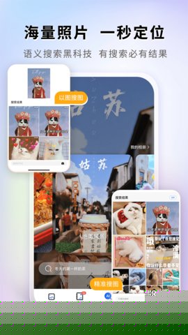 2. 语义级智能搜索与查找: 当用户需要从成千上万张照片中找到特定场景时,传统的翻找方式效率极低。图小小相册引入了基于深度学习的图像内容理解技术,允许用户使用自然语言进行搜索。直接输入上周聚餐的蛋糕特写、宝宝第一次走路的视频或有雪山和湖泊的风景照,系统能精准理解语义,瞬间呈现相关结果,彻底改变了查找照片的方式。