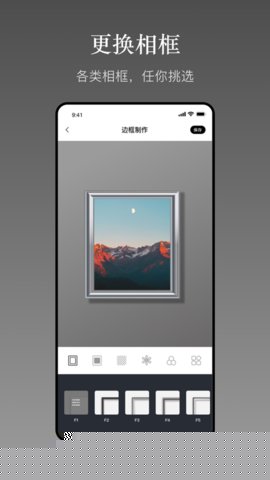 持续进化的美学资源库:软件连一个由全球设计师团队持续更新的动态资源库。这里不仅收录了历经时间考验的经典框型,更不断纳入契合当代艺术与设计流行趋势的现代款式。用户相当于拥有了一个永不枯竭的创意源泉,总能找到最贴合照片主题与时代审美的装裱元素。