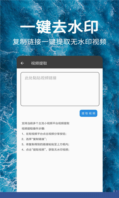 一键视频去水印app手机版不仅仅是一个简单的工具更是数字时代内容创作者和消费者的视频净化器与创意催化剂。通过降低技术门槛让每个人都能够更自由地处理和使用视频内容,从而激发更多的创意火花,促进优质内容的传播与再生。