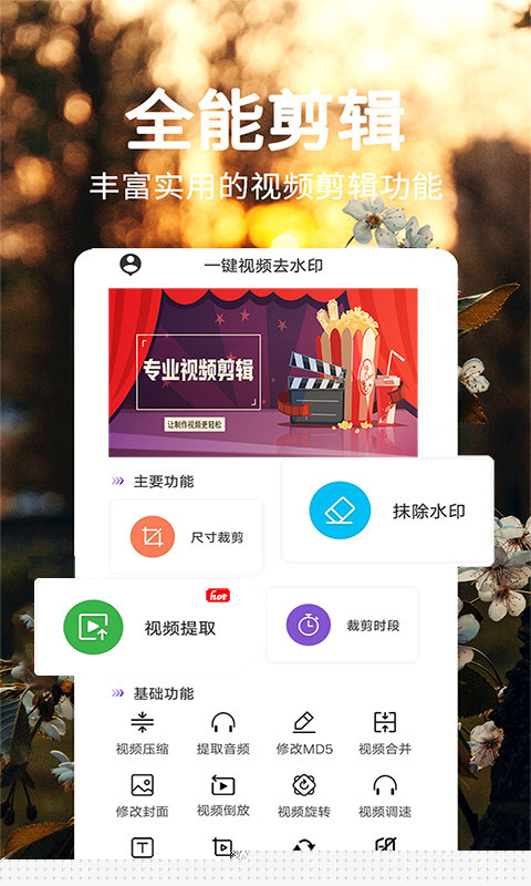 一键视频去水印app手机版是一款专为移动端用户设计的便捷工具类应用。其核心功能是通过智能技术,帮助用户快速、高效地去除视频中的各类水印标识。用户只需提供目标视频的分享链接,应用便能在线解析并提取出无水印的原片资源;对于已下载到手机本地的视频文件,用户也可以通过直观的手动操作,精准框选并消除水印区域。这款应用以其简洁的界面、流畅的操作流程和强大的处理能力,成为了众多短视频爱好者、自媒体创作者和普通用户的得力助手,让视频内容的再利用变得前所未有的简单。