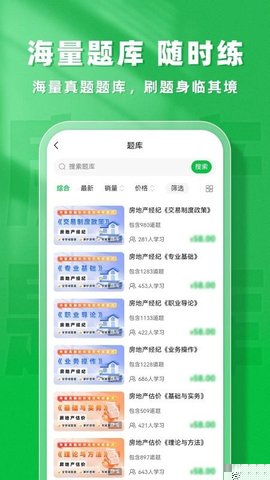 房地产题库帮是一款专为房地产经纪人职业资格考试量身打造的智能化备考软件。其核心定位是成为每一位考生的随身备考专家,通过整合权威的历年真题、科学的模拟试题以及深度的考点解析,构建了一个覆盖全面、重点突出、学练结合的移动学习平台,严格遵循国家官方发布的考试大纲,确保所有学习内容与考试要求同频共振,帮助考生从纷繁复杂的知识体系中抓住主线,实现从知识积累到应试能力转化的高效过渡,不仅是一个题库工具,更是一个集个性化学习计划、进度跟踪、弱点分析于一体的综合性备考解决方案,让备考过程变得更科学、更轻松、更有效。