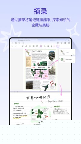 1. 极致拟真的自由书写与批注: 针对用户渴望回归自然书写手感、实现无拘束表达的需求,StarNote内置了先进的拟真书写引擎。其压感笔刷能够精准模拟钢笔的顿挫感、铅笔的颗粒质感,笔迹的粗细浓淡会随着下笔力度和移动速度产生细腻变化,营造出近乎真实的纸上书写体验。这不仅适用于创建空白笔记,更强大的是其沉浸式批注功能——用户可以直接在导入的PDF、Word文档乃至电子书上进行高亮、手写注释和绘图,所有批注都与原文档深度绑定,形成了一个无缝衔接的阅读、思考与记录闭环,彻底解决了纸质文档不便保存、电子文档批注体验割裂的痛点。