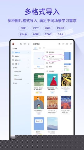 4. 高度定制化与无缝的工作流整合: 为满足不同用户的个性化工作习惯和多场景应用需求,StarNote提供了深度的自定义选项。从笔刷的物理参数(如压力灵敏度、平滑度)到界面的整体布局主题,用户都可以自由调整,支持近乎无限的画布缩放,允许自定义导入文档的页面边距与行间距,并提供了大纲视图来梳理逻辑,支持从PDF、Word到专业CAJ等多种格式文件的导入,且数据可通过加密云同步在多设备间无缝衔接,兼顾了安全隐私与使用便利,解决了工具适应人而非人适应工具的终极体验追求。
