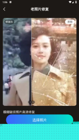 1. 珍贵记忆的数字化修复: 针对家中老旧、破损、褪色的物理照片,用户最大的痛点是无法复原其历史面貌。焕拍秀的老照片修复功能,利用AI智能识别技术,能够自动检测照片上的划痕、折痕、污渍以及色彩失真区域,并进行智能填充与色彩还原。用户亦可手动划定修复区域,控制修复强度,从而将模糊、残缺的记忆清晰地带回到数字世界,解决了用户保存家族历史与个人回忆的迫切需求。