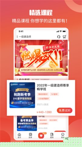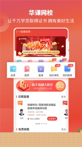 中华考试网app是一款深度聚焦于职业资格认证考试的综合性移动学习解决方案,依托强大的行业资源与教育技术,将传统线下培训的核心价值——系统教学、实战演练与进度管理——完美迁移至移动端,的核心使命是打破备考的时空壁垒,让学习变得随时随地、灵活高效。其内容库覆盖了数十个热门行业的主流资格认证考试,如一级建造师、注册会计师、执业医师、教师资格证等,确保了绝大多数职业晋升需求都能在此找到对应的学习路径。通过整合权威的官方大纲解读、资深讲师的精讲视频、历经多年沉淀的海量真题与模拟题,该app构建了一个从知识输入到巩固输出,再到模拟实战的完整学习生态链,陪伴考生走稳备考的每一步,从扎实基础到冲刺高分。