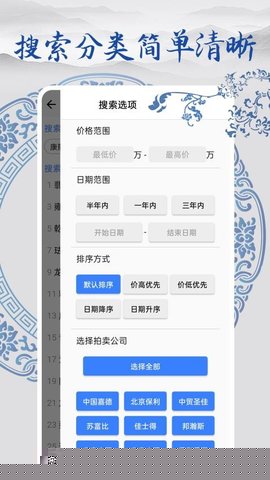 是一站式无缝衔接的操作体验。 软件的操作逻辑深度契合收藏研究的行为路径,将搜索查证 -> 比价分析 -> 记录归档 -> 互动探讨等核心流程有机整合。用户可在首页通过关键词或上传局部特征照片进行器物溯源查询,系统会快速匹配相似藏品并列出其拍卖记录与文献出处,整个过程流畅自然,极大地优化了研究效率。